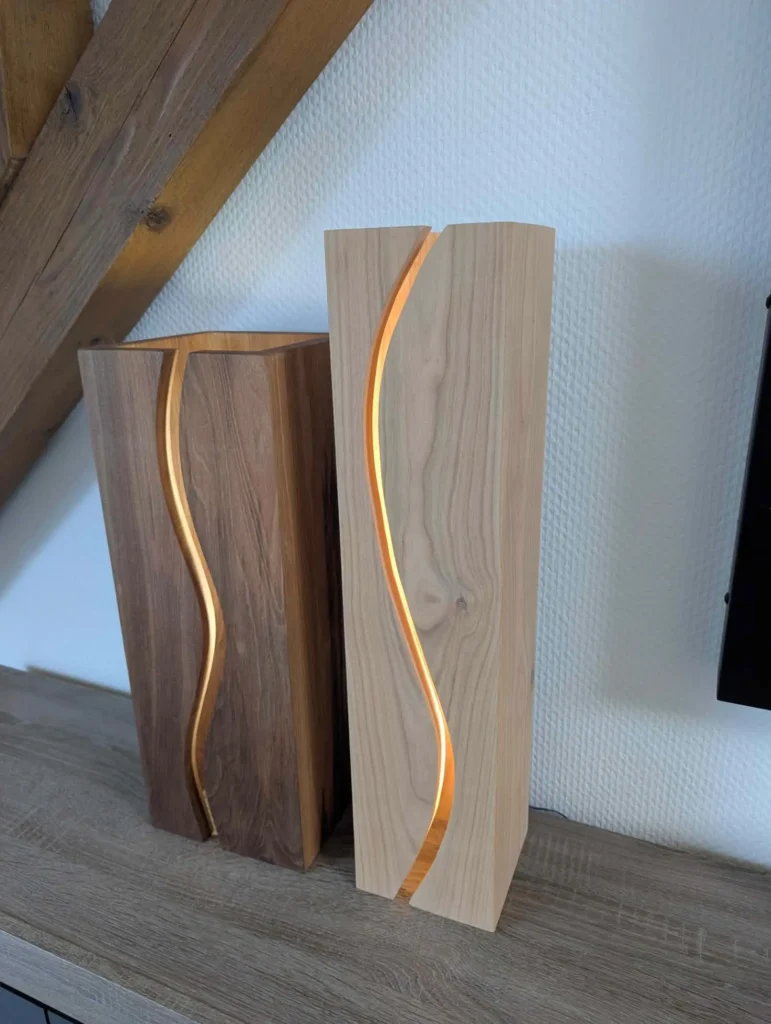 En mêlant le bois à d’autres matériaux comme le métal ou la résine, je crée des pièces décoratives tel que des tableaux, des lampes et des horloges qui ajouteront une touche d’originalité et de charme à votre espace de vie.